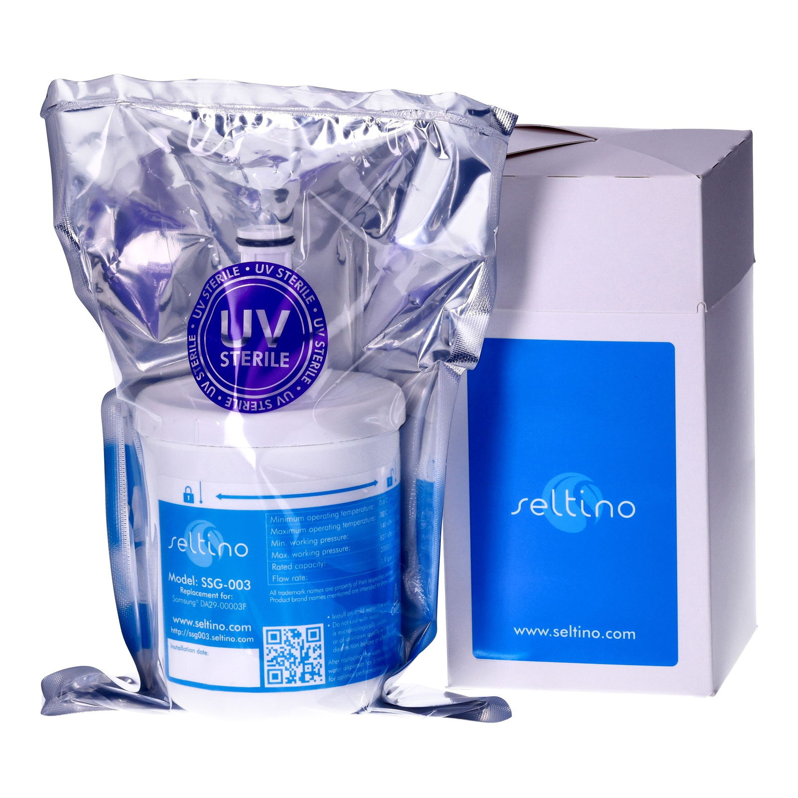 Der Seltino SSG-003 ist ein Wasserfilter, der im Inneren des Kühlschranks montiert wird und als vollwertiger Ersatz für das Samsung DA29-00003G HAFIN2/EXP Modell mit Samsung Side-by-Side Kühlschränken kompatibel ist. Sie hat einen speziell entwickelten Schlüssel, der in die meisten auf dem Markt befindlichen Kühlschränke von Samsung passt, die über einen internen, verschraubten Filter an der Oberseite des Kühlschranks verfügen.