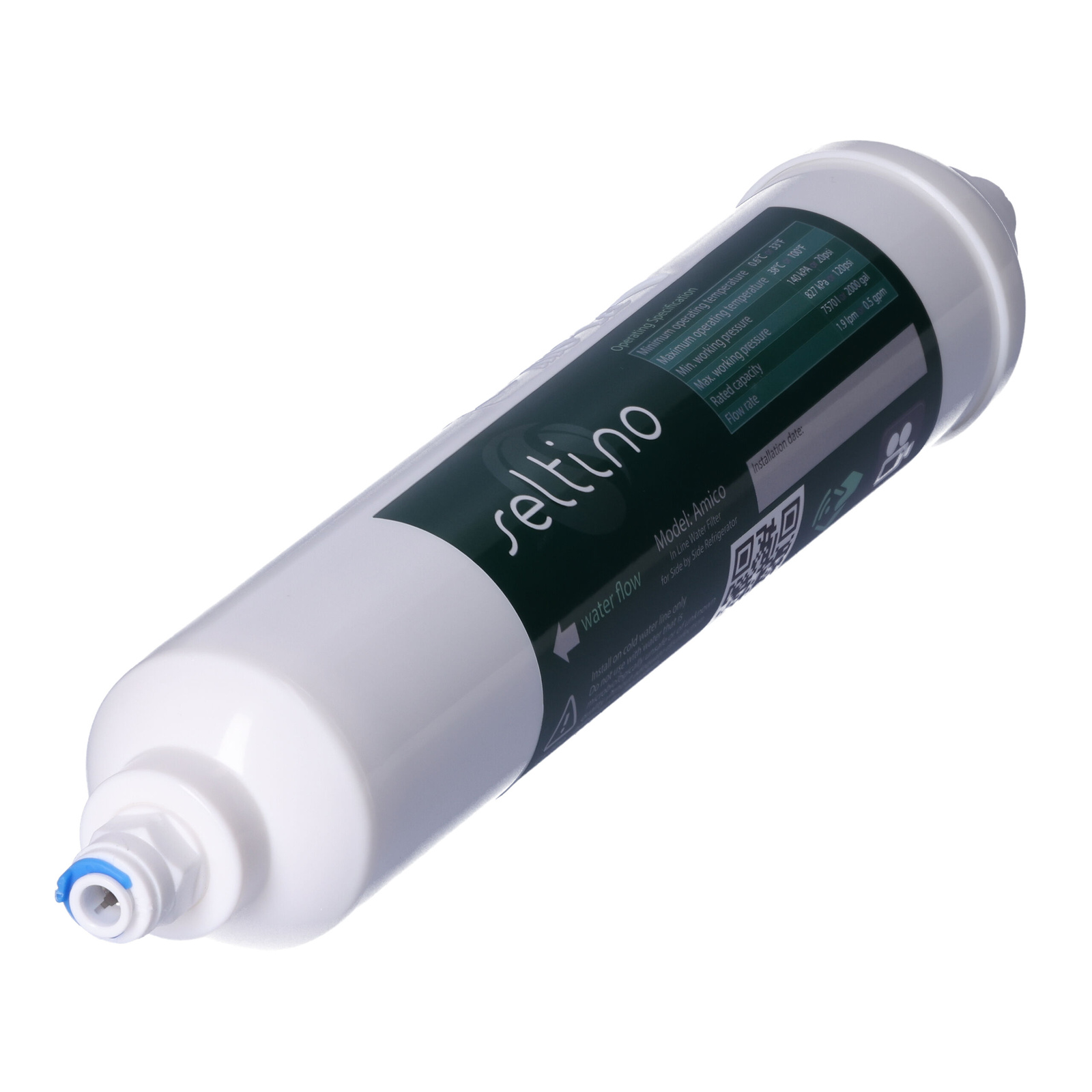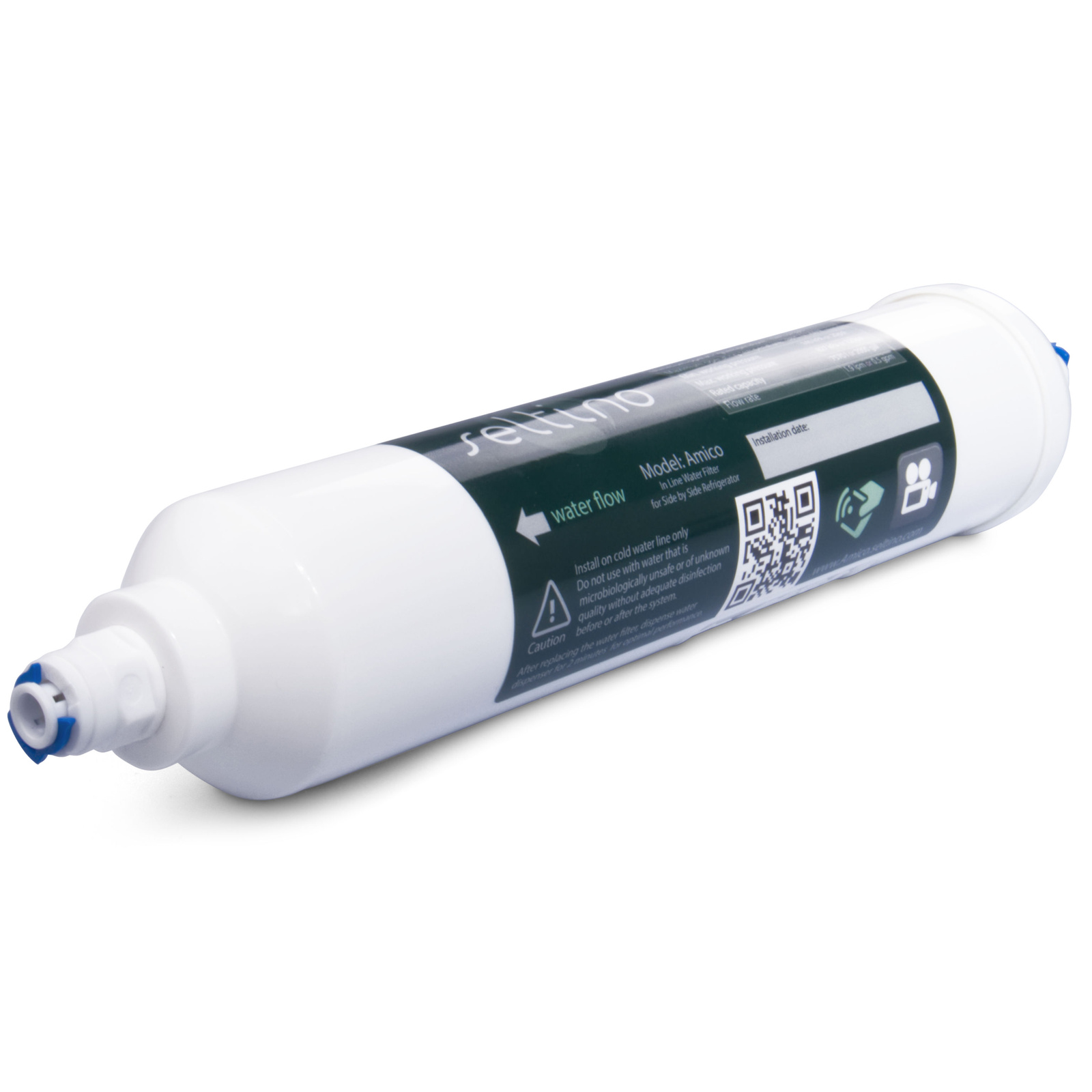 Seltino Amico ist ein externer Wasserfilter für Kühlschränke, bei denen der Filter direkt am Wasserzulaufschlauch montiert wird – als kompatibler Ersatz für den originalen LG 5231JA2010B sowie Samsung DA29-10105J.