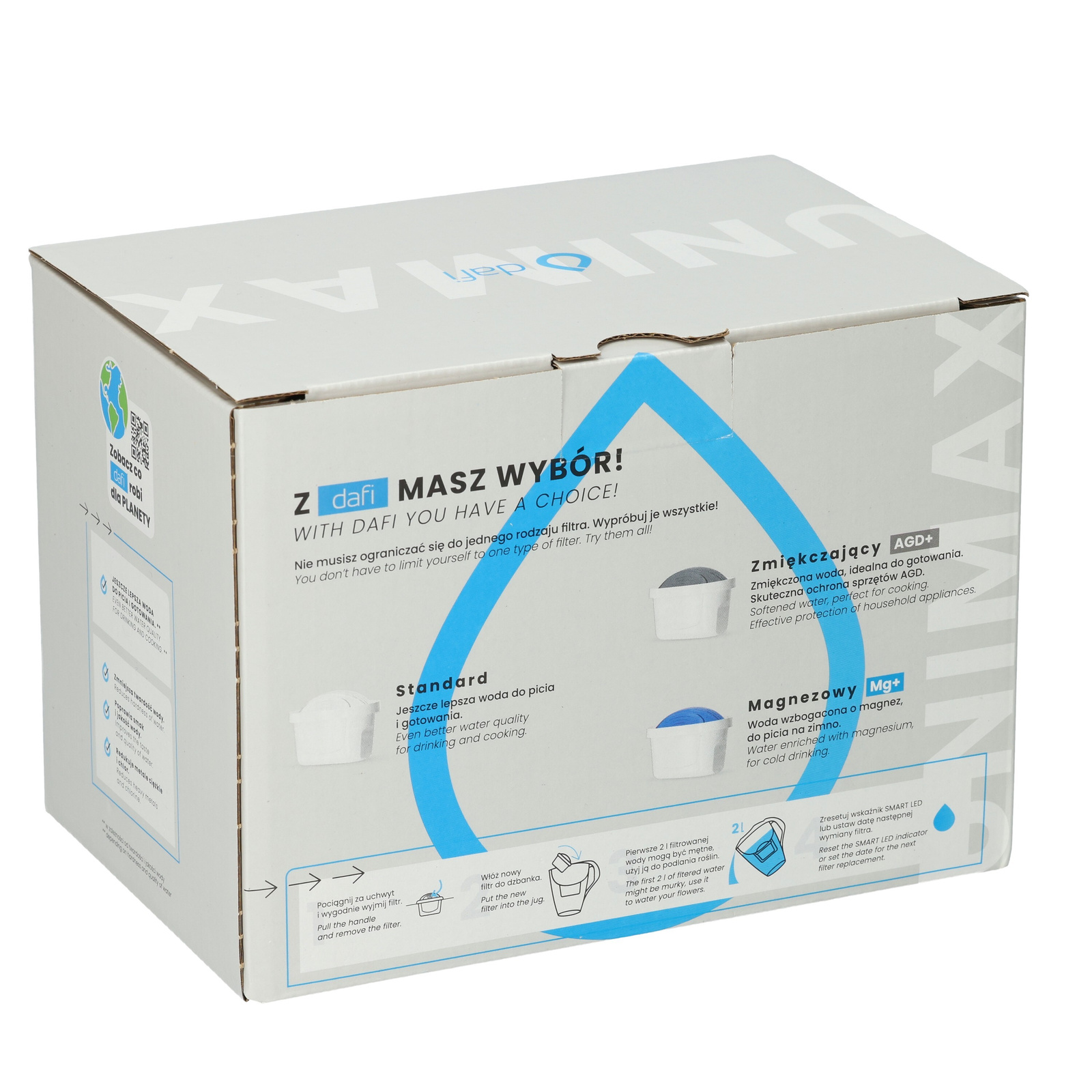 Der Dafi Unimax Filter ist für Filterkrüge konzipiert und reinigt Leitungswasser realistisch. Dafi-Produkte sind eine hervorragende Alternative zu Wasser in Flaschen. Die Lösungen der Marke sind umweltfreundlich - durch die Verwendung der Produkte der Marke tragen Sie dazu bei, die Überproduktion von Plastik zu reduzieren, ohne Ihr Haushaltsbudget zu belasten. Trotz seiner geringen Größe kann der Filter bis zu 150-200 Liter Wasser filtern, ohne während seiner Lebensdauer an Qualität zu verlieren! Der Aktivkohlegehalt reduziert die Anwesenheit von Schwermetallen, Reinigungsmitteln, Herbiziden und Pestiziden im Leitungswasser maximal. Außerdem beseitigt es den unangenehmen Geruch und Nachgeschmack von Chlor. Das Ionenaustauscherharz ist für die Enthärtung des Wassers verantwortlich, wodurch Kalkablagerungen beseitigt und Korrosion in Heizgeräten wie dem Wasserkocher, dem Bügeleisen oder der Kaffeemaschine verhindert werden.
