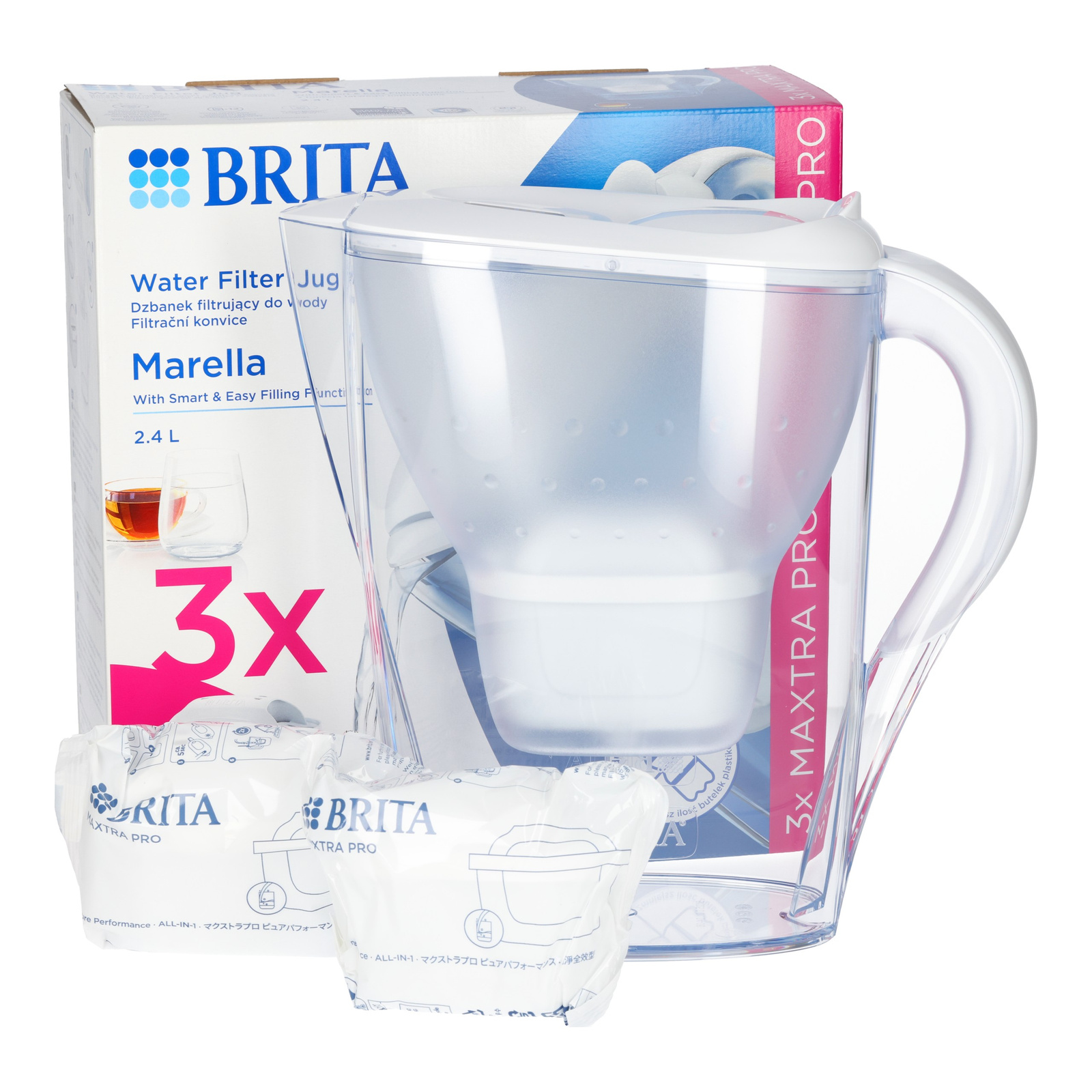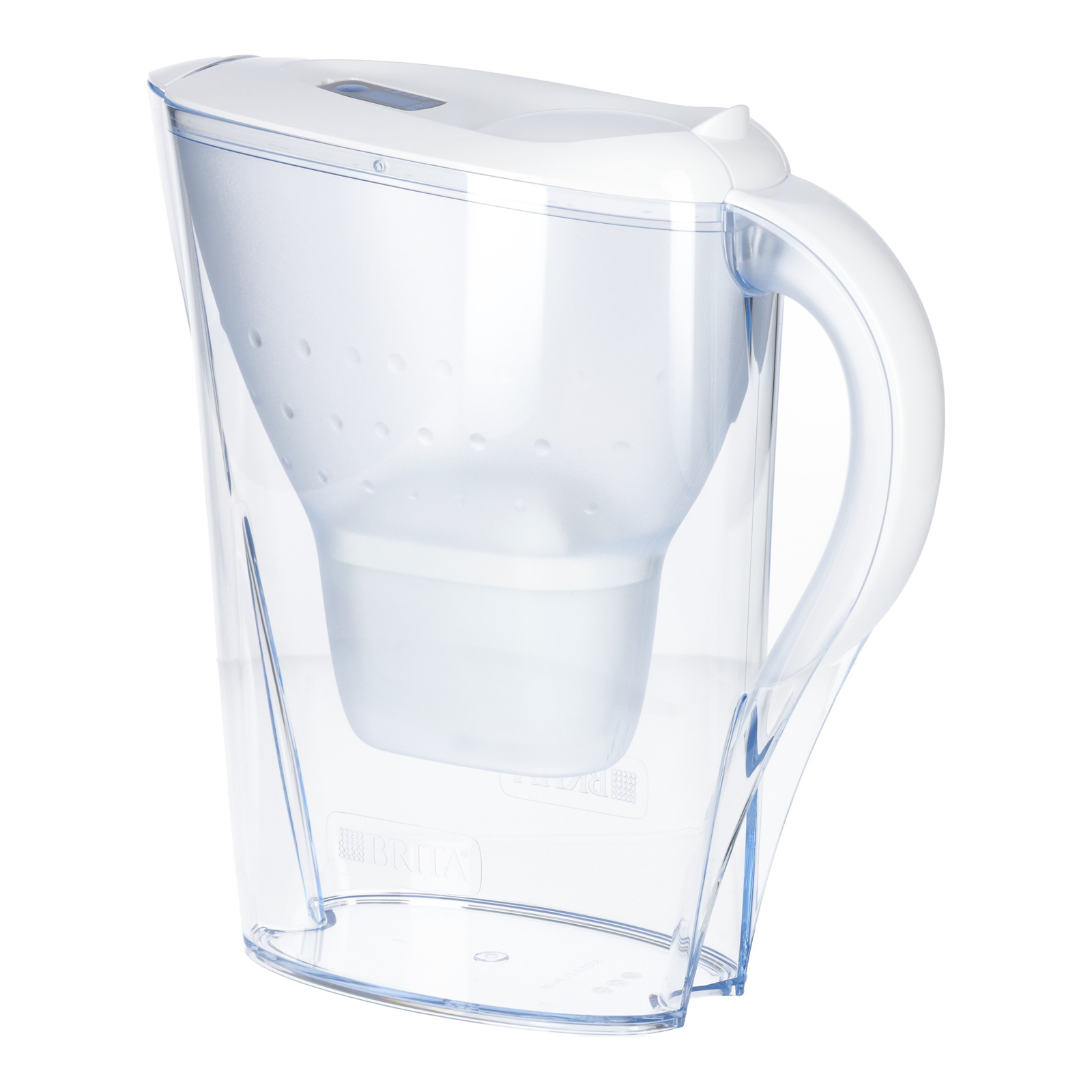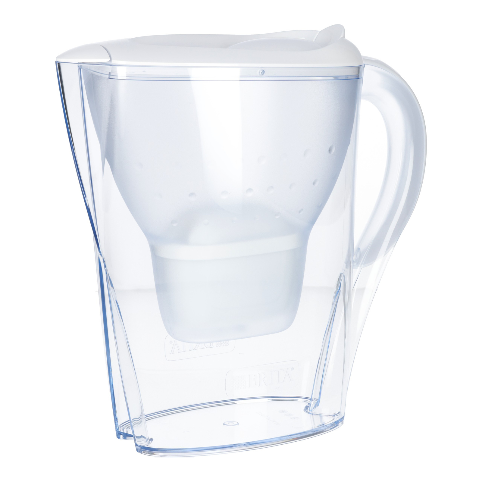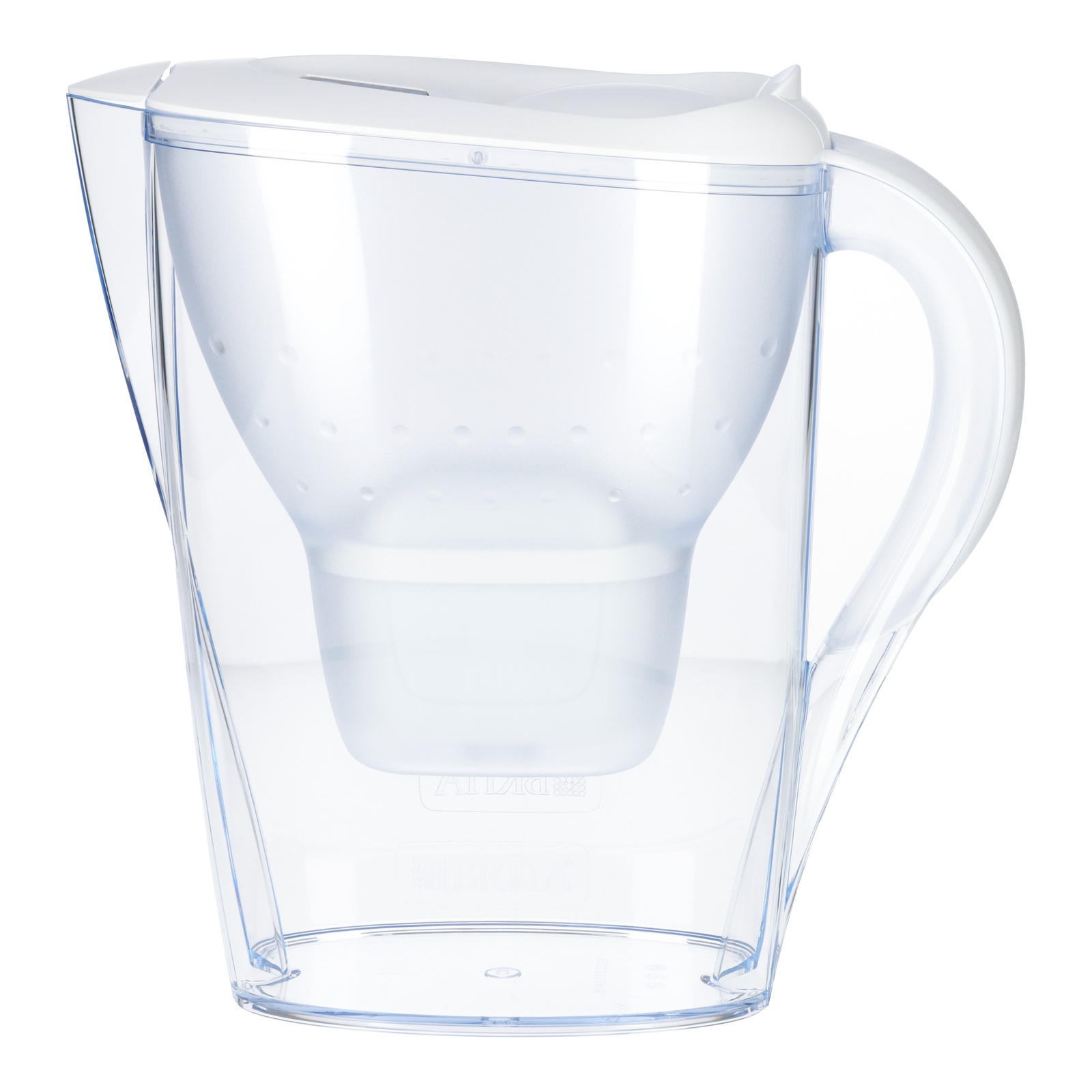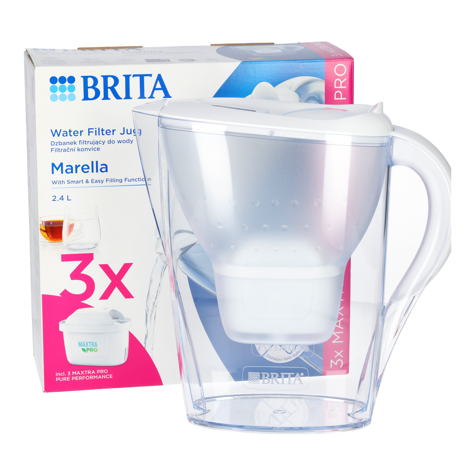 BRITA Marella Wasserfilterkanne 2,4 l in Weiß ist die perfekte Wahl für alle, die zuhause jederzeit gefiltertes Trinkwasser genießen möchten.