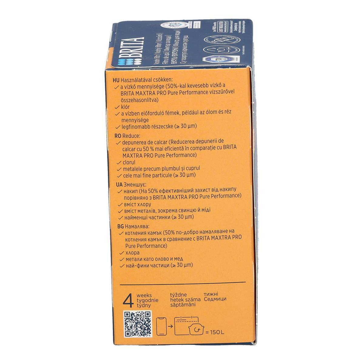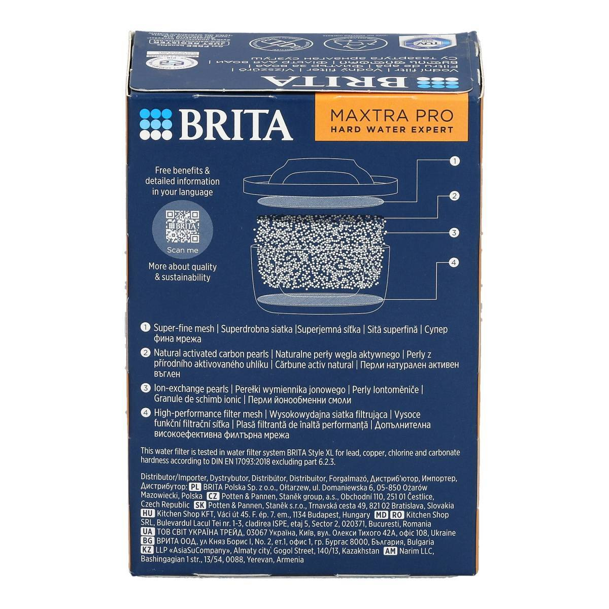 BRITA MAXTRA PRO Hard Water Expert Wasserfilterkartusche ist die moderne Lösung für alle, die zuhause dauerhaft gefiltertes Trinkwasser in Top-Qualität genießen möchten – besonders in Regionen mit hartem Wasser. Die speziell entwickelte Filterformel reduziert überschüssige Mineralien, senkt den Gehalt an Chlor sowie Blei und anderen Schwermetallen, die Geschmack und Geruch beeinträchtigen können. Das Ergebnis: klareres, besser schmeckendes Wasser, das Getränke verfeinert und Speisen geschmacklich aufwertet.