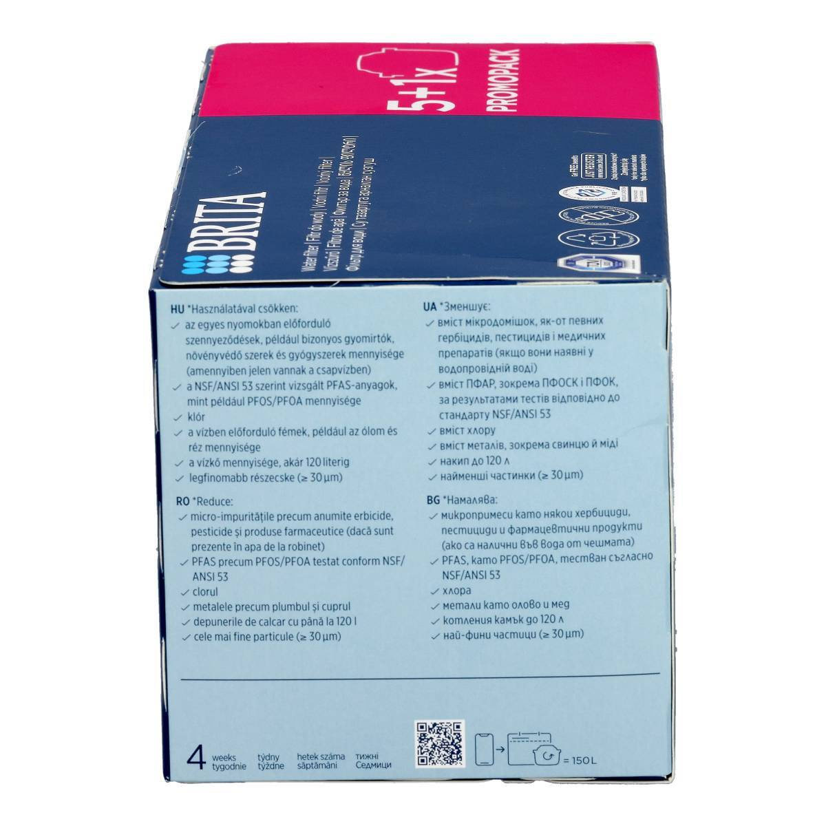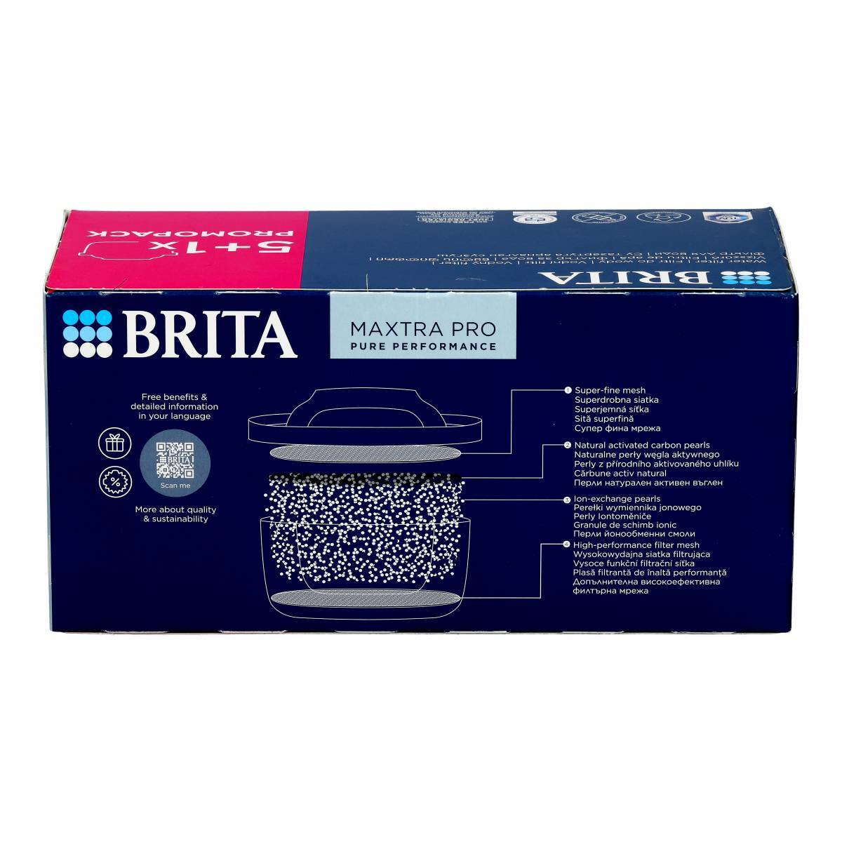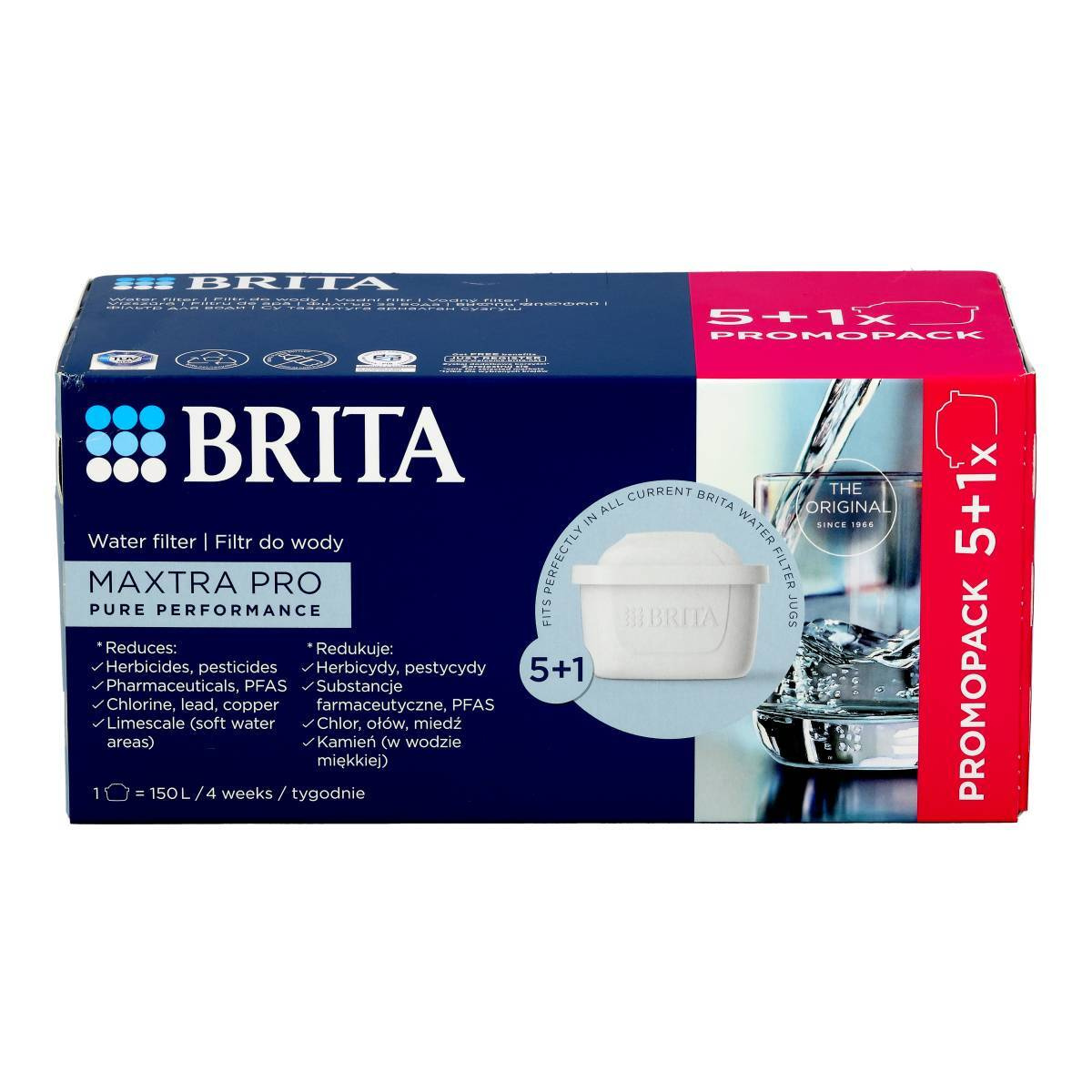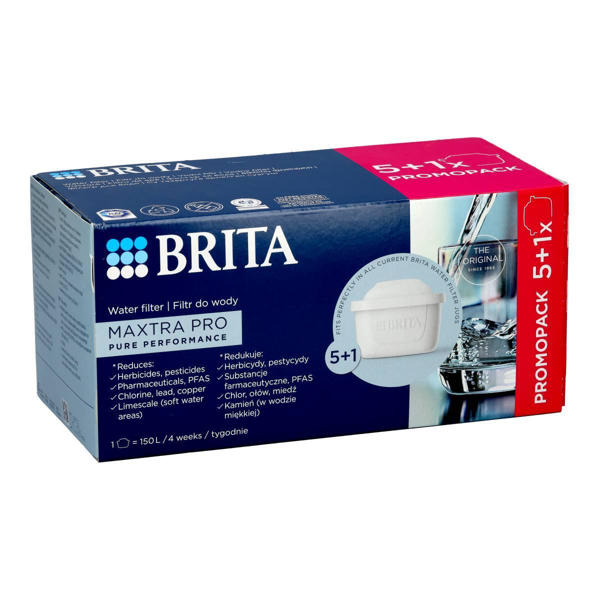 BRITA MAXTRA PRO Pure Performance Wasserfilterkartuschen 5+1 sind ein leistungsstarkes Filter-Set für alle, die zuhause dauerhaft gefiltertes Trinkwasser in hoher Qualität genießen möchten. Dank moderner Filtertechnologie reduziert jede der sechs Kartuschen zuverlässig Chlor, Schwermetalle sowie verschiedene Verunreinigungen, die Geschmack und Geruch des Wassers beeinträchtigen können. Bei regelmäßiger Nutzung verbessert sich die Wasserqualität spürbar – Getränke schmecken frischer und auch beim Kochen kommen Aromen besser zur Geltung.