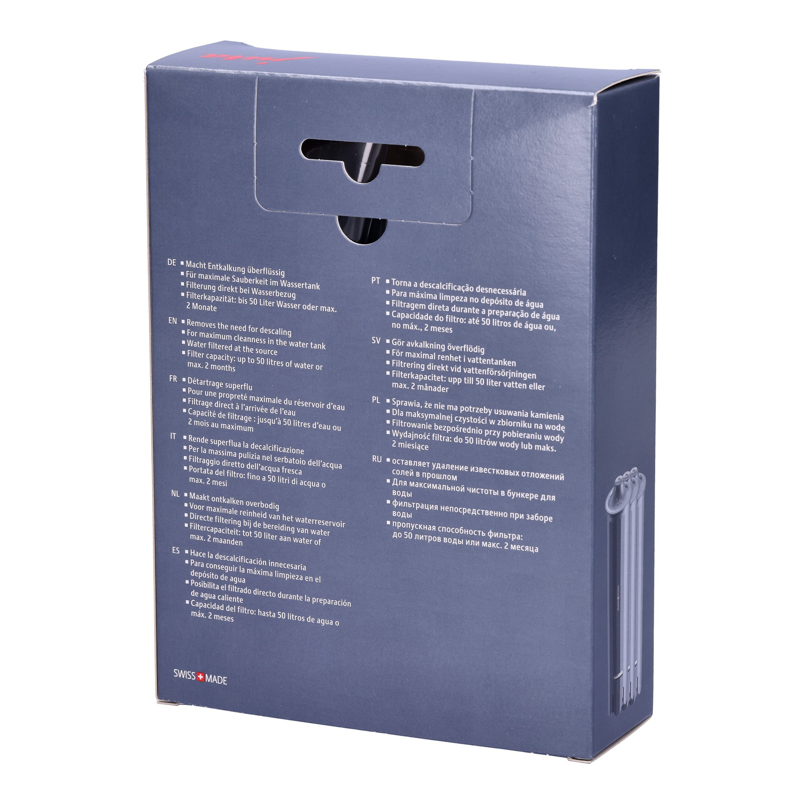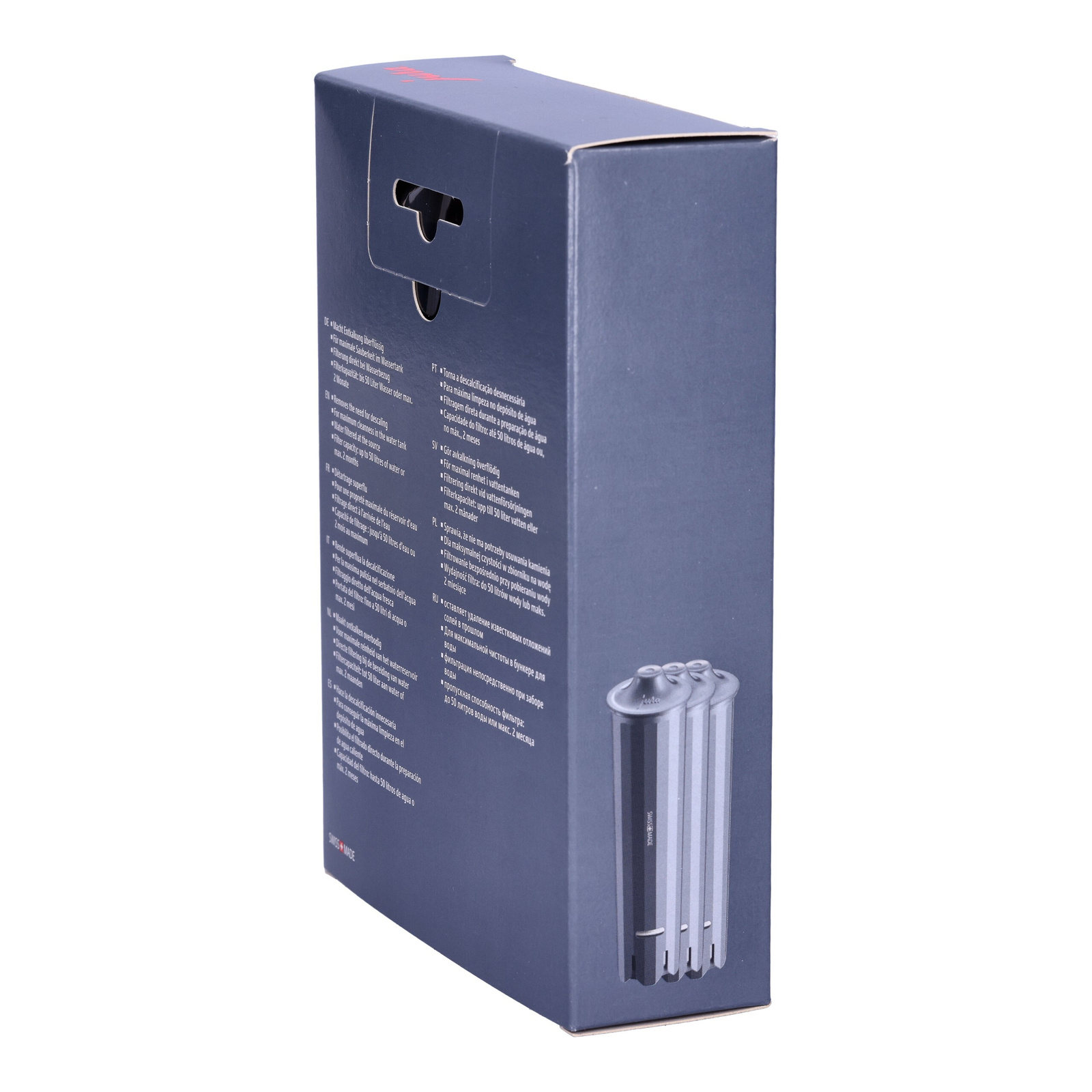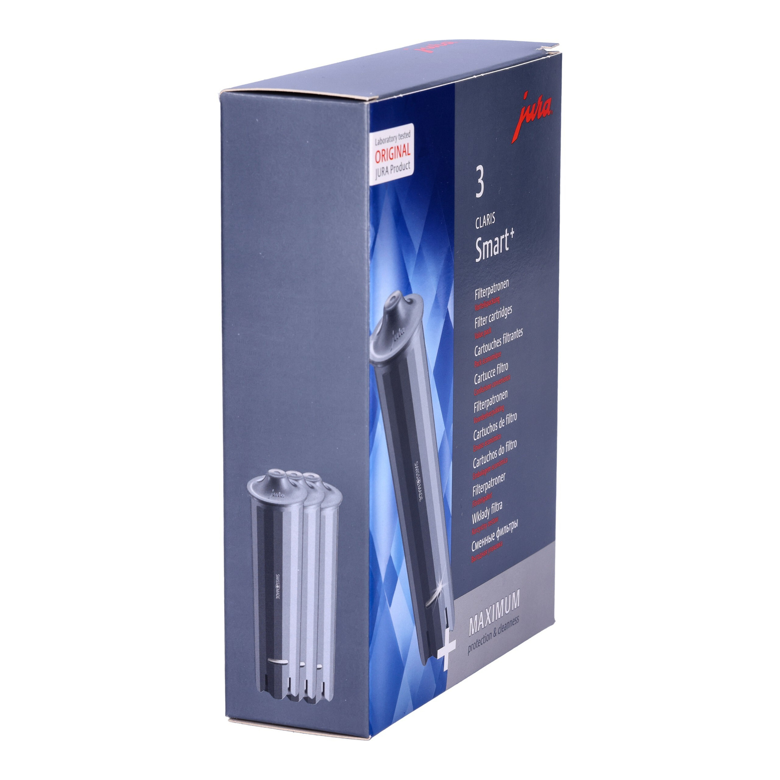 Der JURA Claris Smart+ bietet eine Kapazität von 50 Litern und unterstützt Sie damit bis zu 2 Monate lang. Im Set sind drei Filter enthalten – perfekt für eine langfristige, komfortable Nutzung Ihres Kaffeevollautomaten.