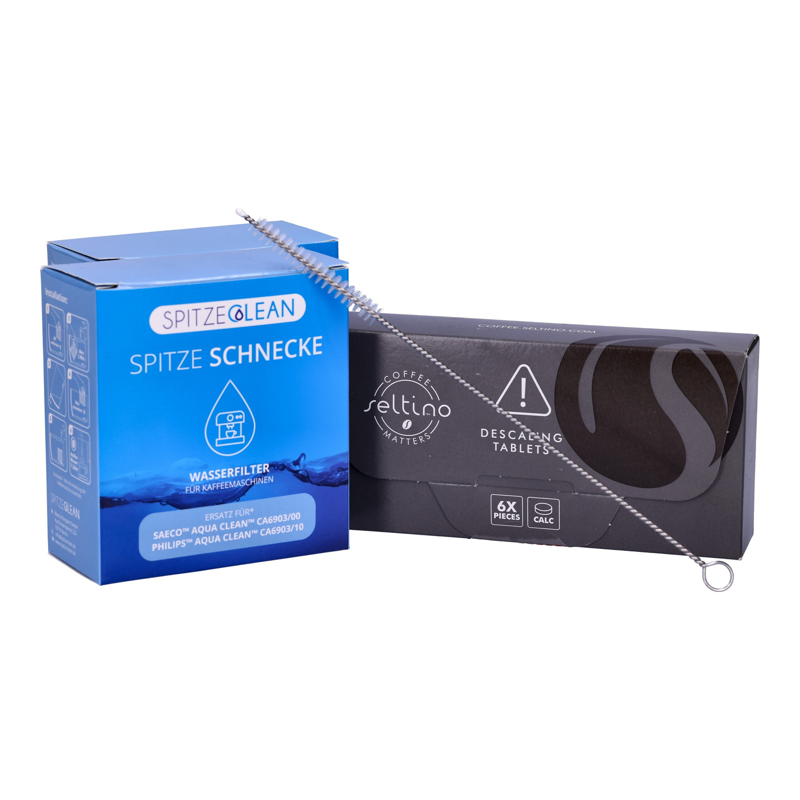 SET: 2× Spitze Schnecke – Ersatzfilter für Philips Saeco CA6903 AquaClean + Entkalkungstabletten + Bürste