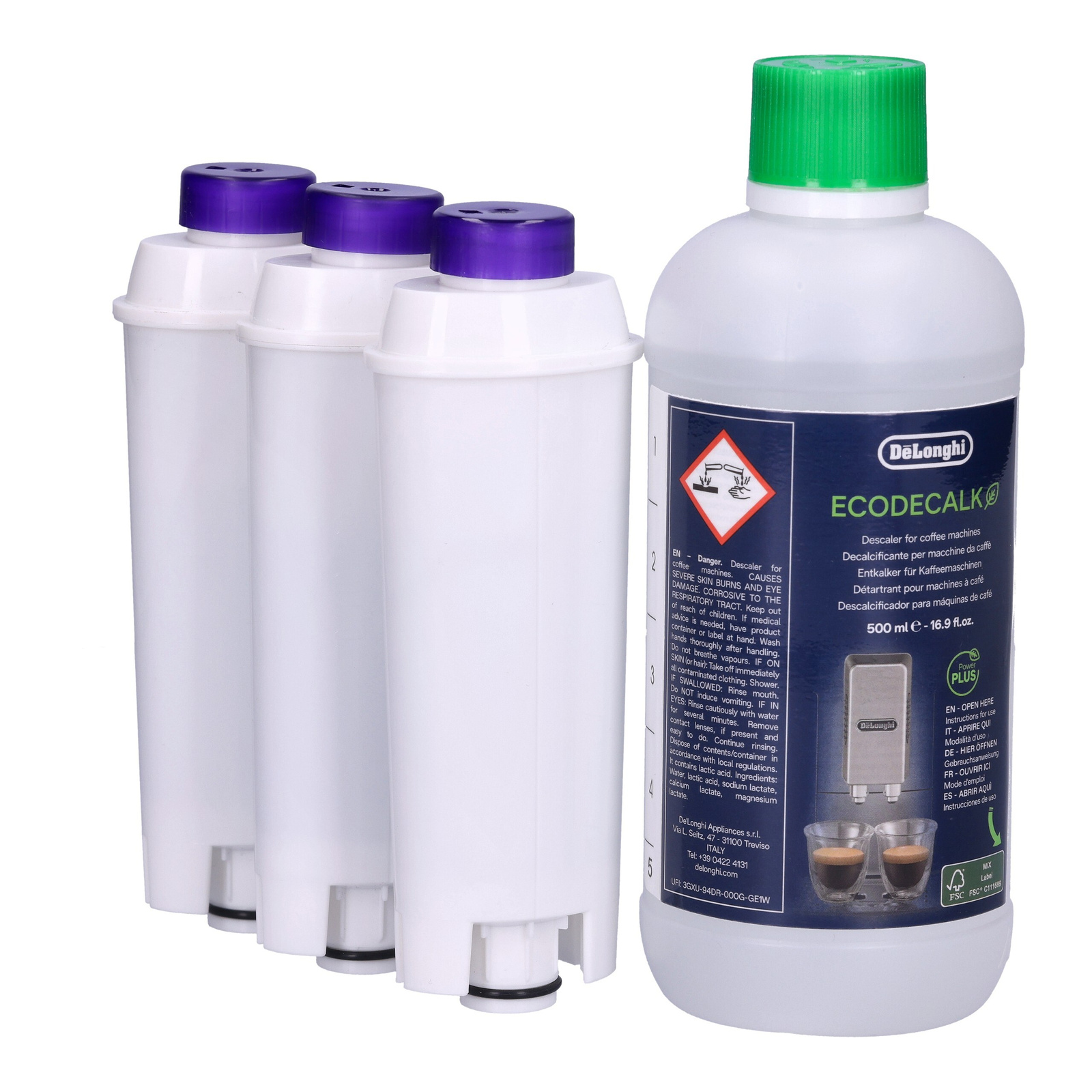 SET: 3x Spitze Ellipse Wasserfilter – Ersatz für DLS C002 / SER3017 + De’Longhi EcoDecalk 500 ml