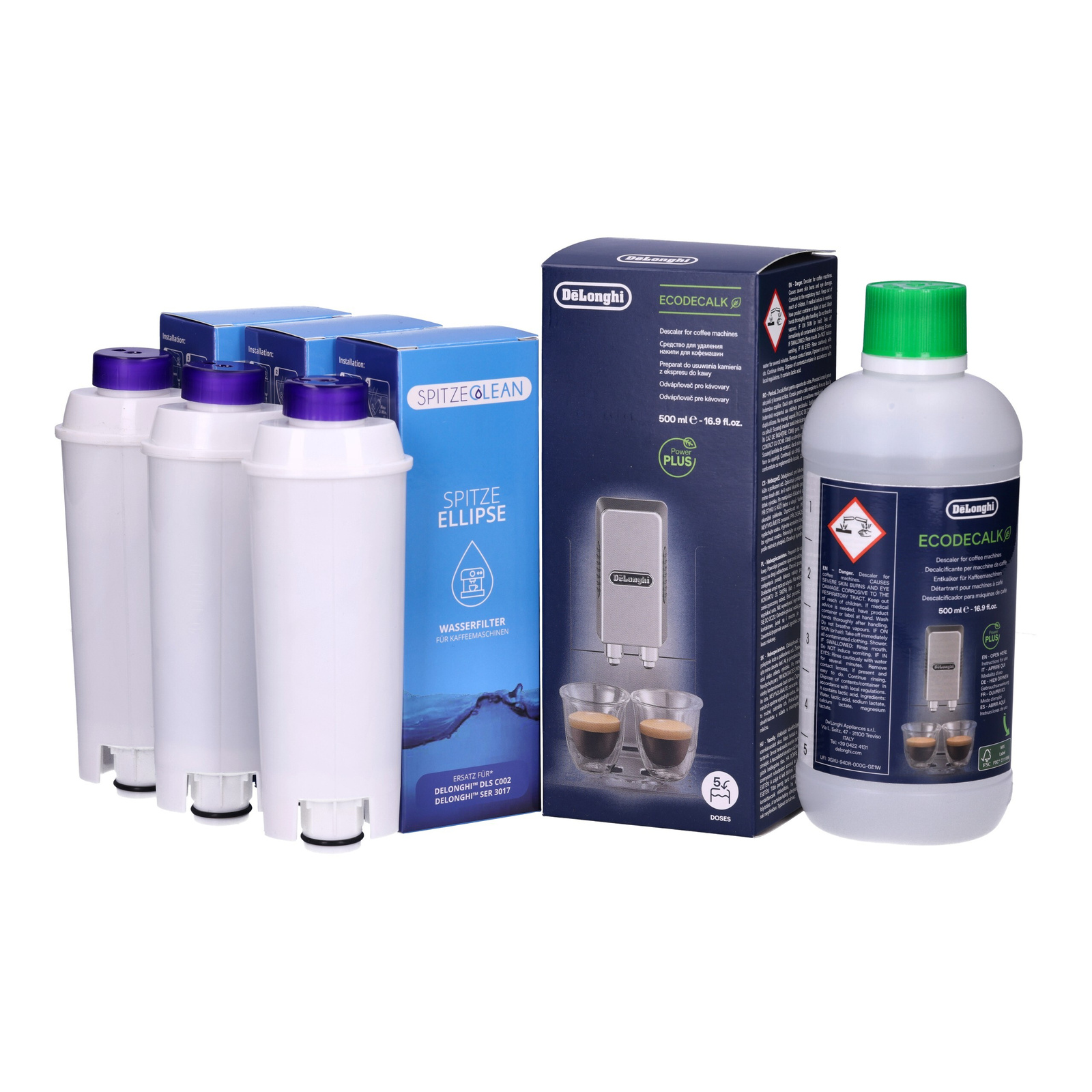 SET: 3x Spitze Ellipse Wasserfilter (Ersatz für DLS C002) + De’Longhi EcoDecalk 500 ml