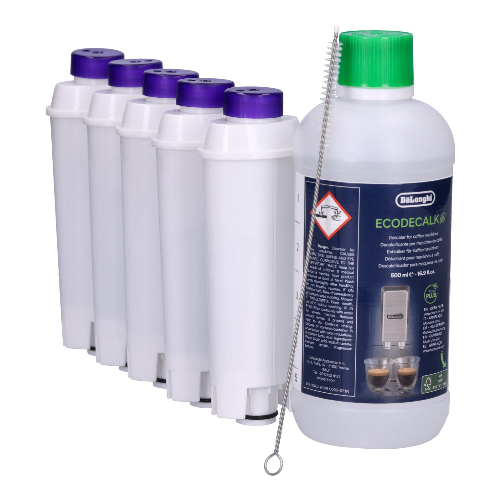 SET: 5x Spitze Ellipse Wasserfilter (Ersatz für DLS C002) + De’Longhi EcoDecalk 500 ml + Reinigungsbürste