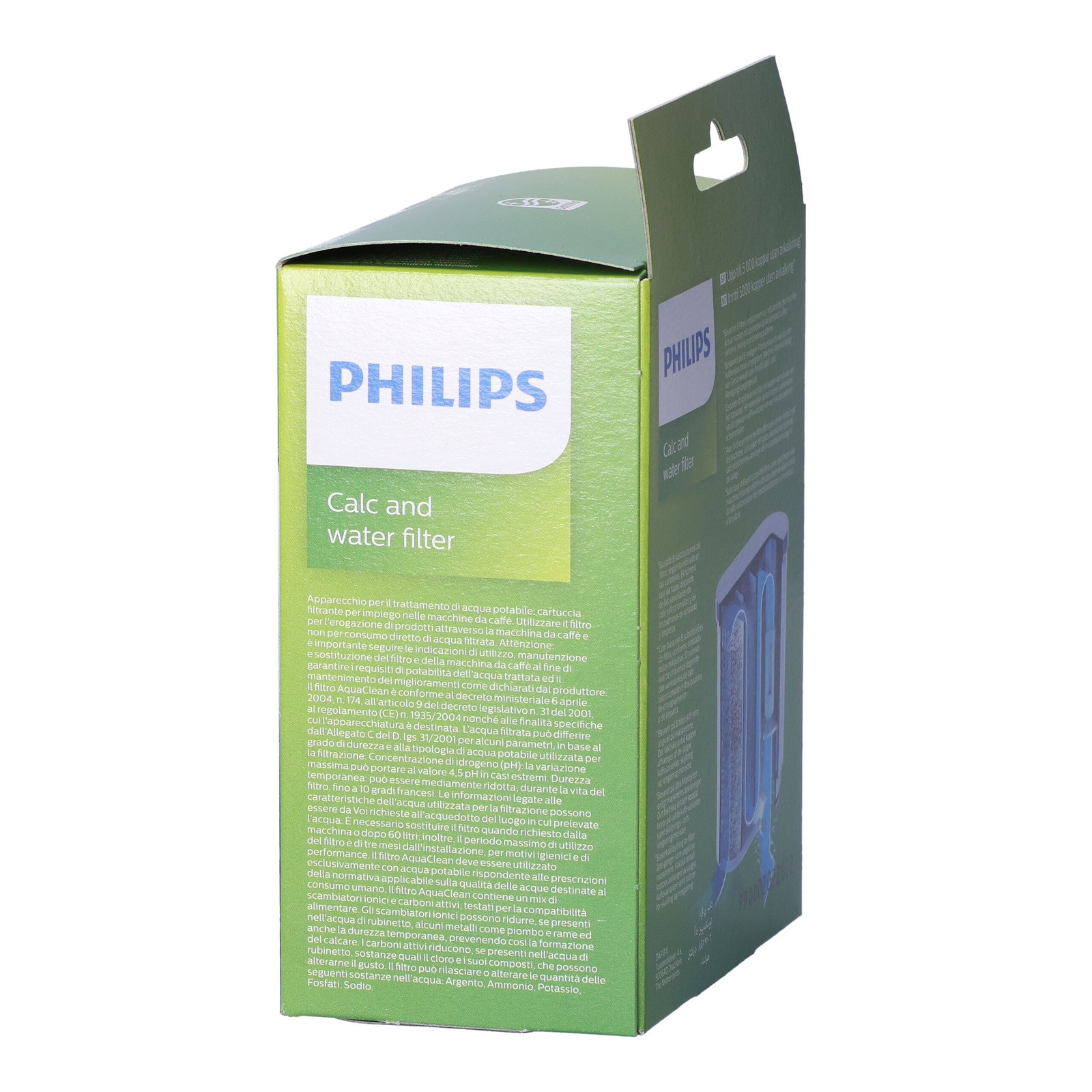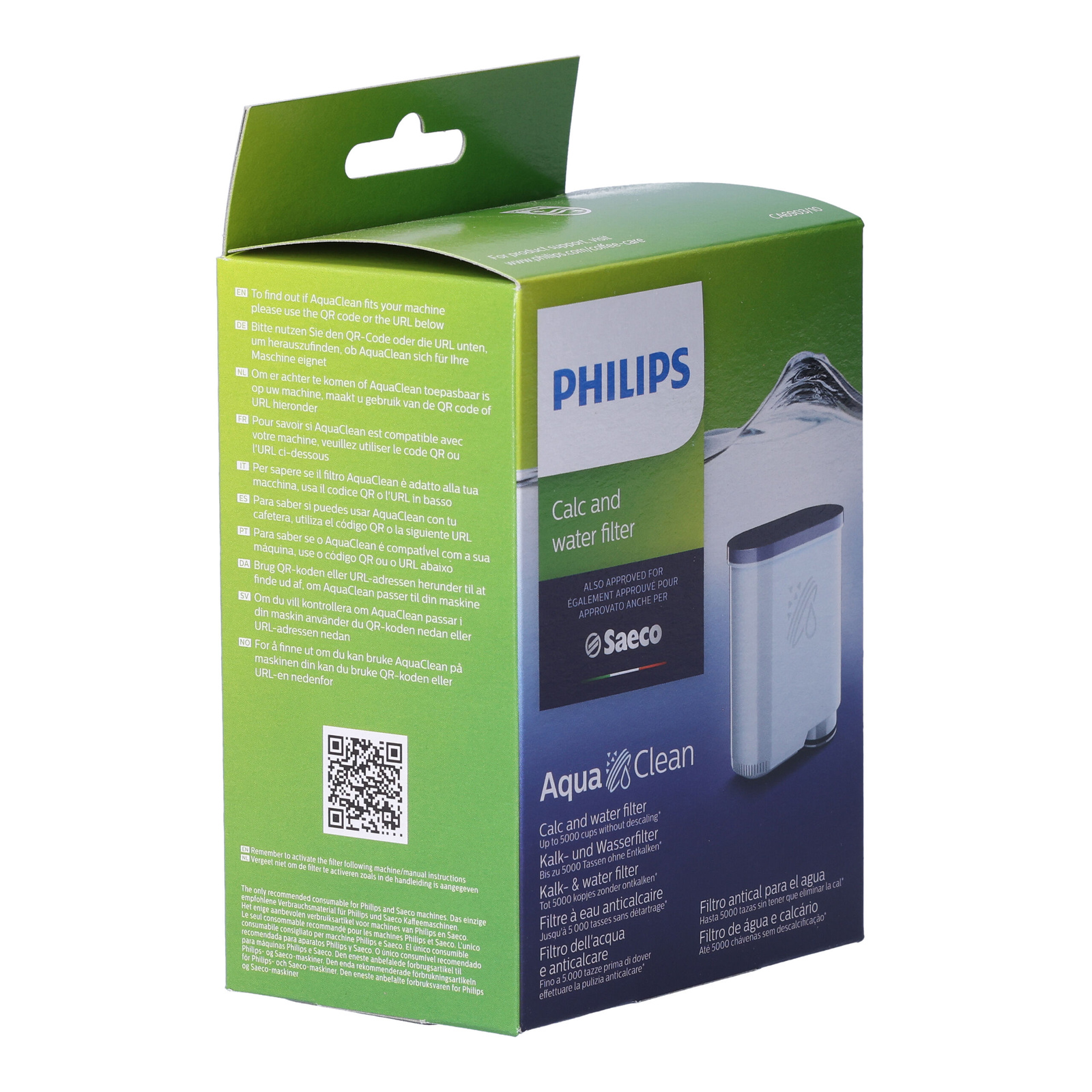 Philips AquaClean ist der Original-Wasserfilter für Philips Saeco Kaffeemaschinen und sorgt für kristallklares Wasser und unverfälschten Kaffeegeschmack. Mit Hilfe der Ionenaustauschtechnologie entfernt er Kalk aus dem Wasser, bevor es in die Maschine gelangt, um Kalkablagerungen zu verhindern, während die AquaClean-Funktion für einen optimalen Durchfluss von gereinigtem Wasser sorgt, wodurch die Notwendigkeit, die Maschine zu entkalken, minimiert wird.